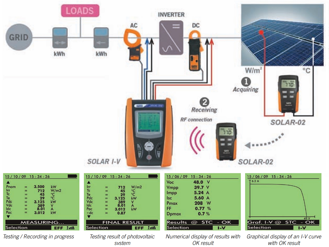 SOLAR I-V has been designed to meet any requirement of photovoltaic installation testers. Further to providing the possibility of testing and measuring the efficiency of single-phase photovoltaic systems and also measures the I-V characteristic both of a single module and of module strings. Thanks to SOLAR I-V, the operator can test the photovoltaic system and, should it give a negative result, immediately identify the problems of the system in order to promptly solve them.